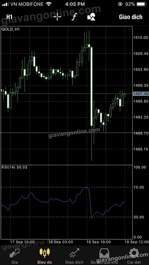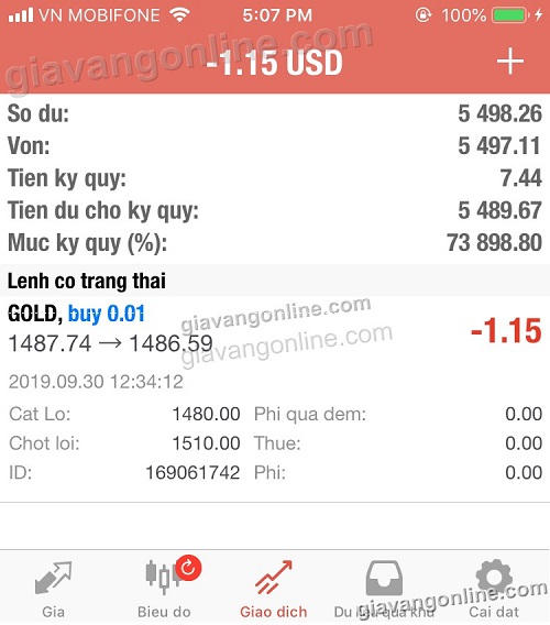 * Lúc này màn hình hiển thị ra GOLD (vàng) cho bạn theo dõi và giao dịch
