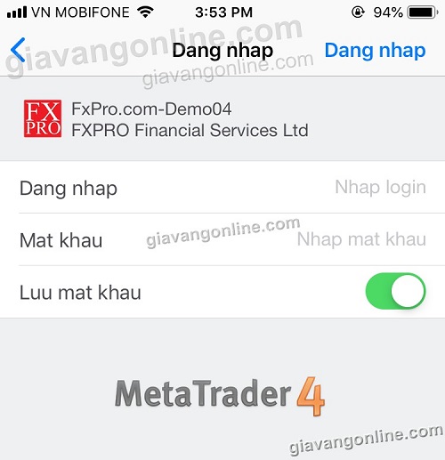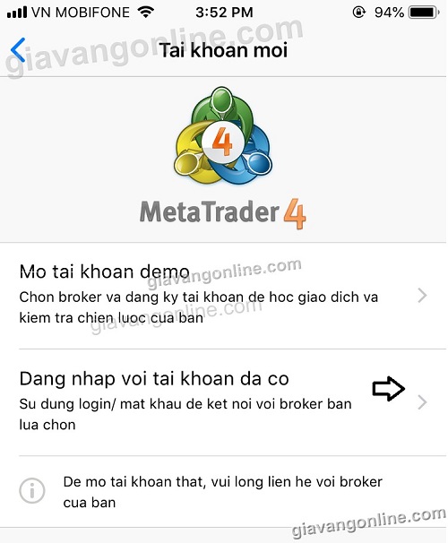 3. Đăng nhập vào tài khoản MT4 đã tạo:
