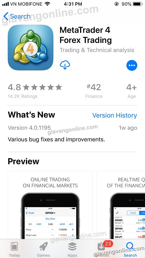 Metatrader 4 cho Iphone