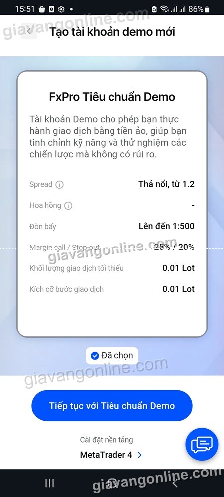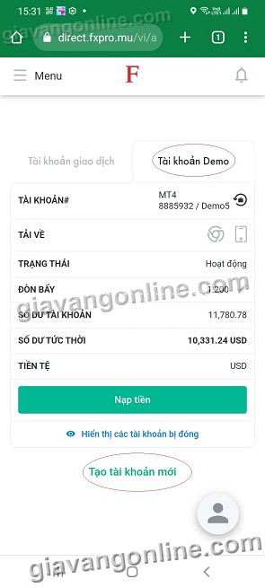 II. Hướng dẫn tạo tài khoản giao dịch DEMO MT4/MT5 Fxpro :