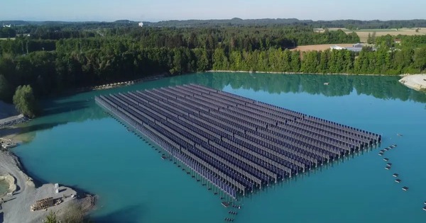 Một công ty giải pháp năng lượng tái tạo Đức vừa đưa vào vận hành nhà máy điện mặt trời nổi đầu tiên trên thế giới có cấu trúc thẳng đứng. Thiết kế này mở ra hướng đi mới trong việc khai thác năng lượng sạch trên sông hồ.